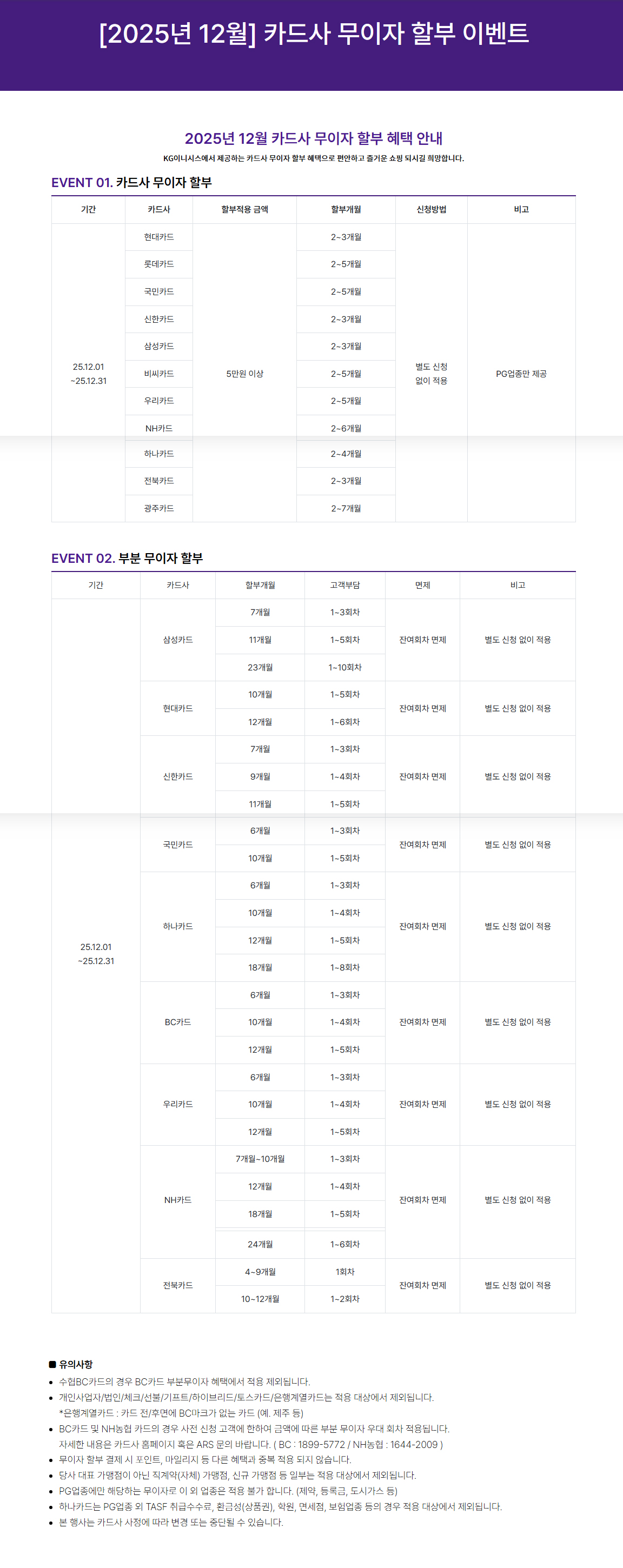 2025년 12월 카드사 무이자 할부 혜택 안내