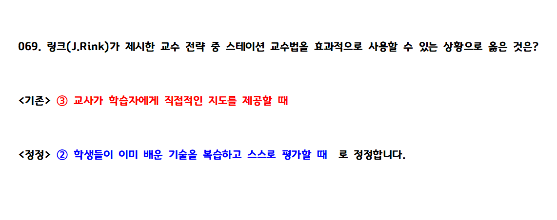[정오표] 기출예상문제집 스포츠교육학 예상문제 069번 정답 수정